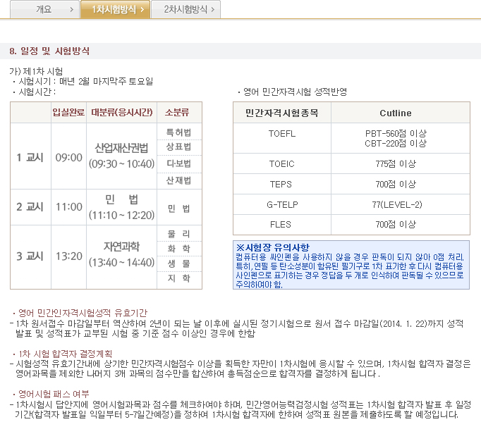 3. 시험과목 및 시험방법