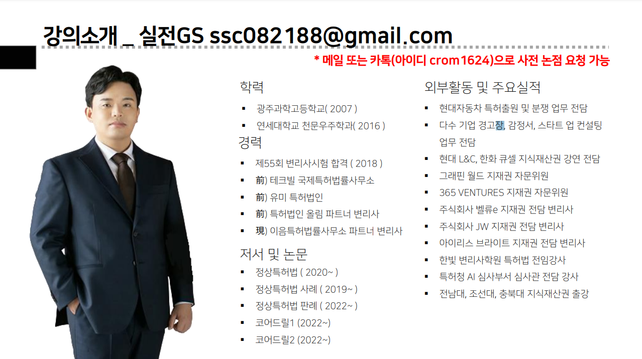 ● 現) 한빛 변리사학원 특허법 전임강사